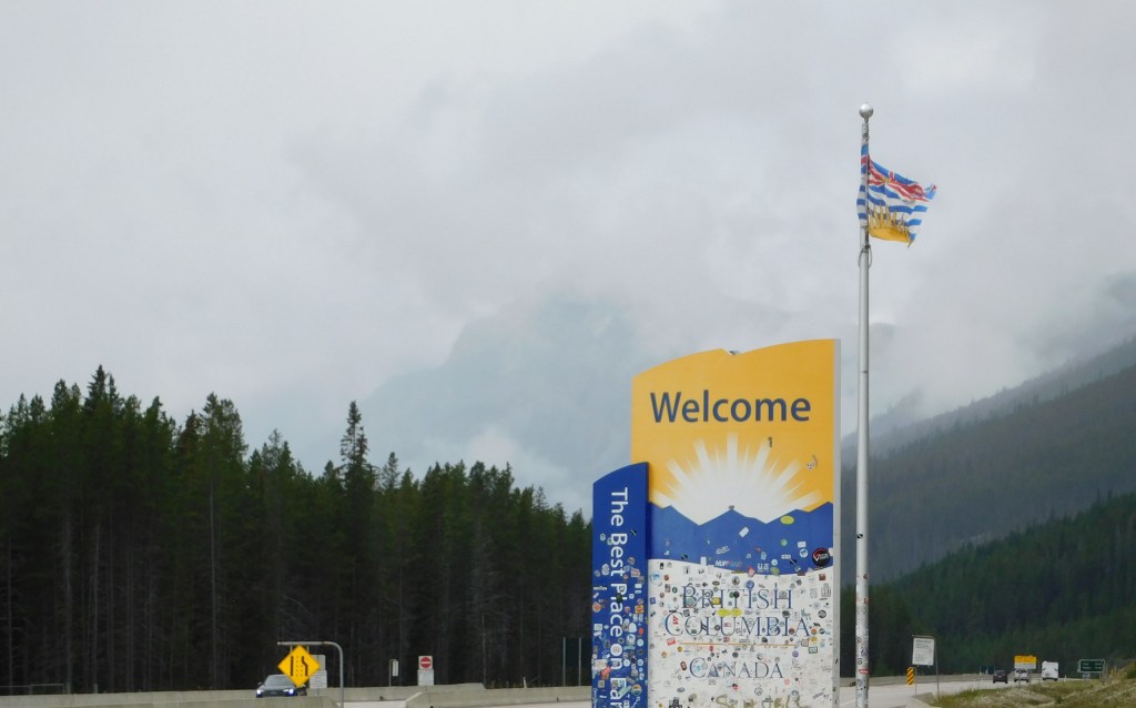 Here is a photo of the exit from the rest stop, with the sign welcoming me to British Columbia.