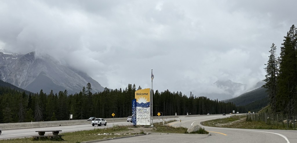 And further back in the rest stop, where my car was parked, a sign welcoming me to Yoho National Park.