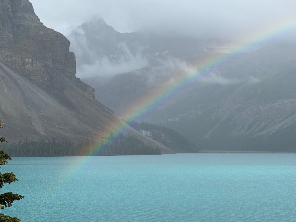 The photos don’t really do it justice. Because I was so close to it the colors in the rainbow were very vivid, especially the blues, indigos and violets.