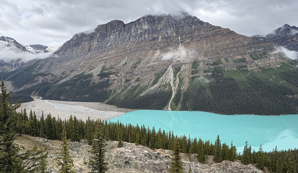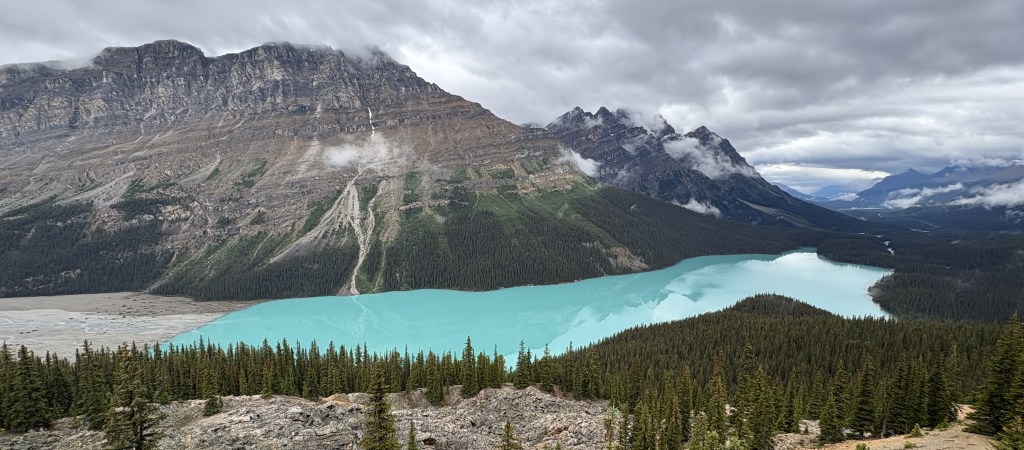 This was walking up the hill to another lake just up the road. Peyto Lake is also glacier fed, from the, you guessed it, Peyto Glacier.