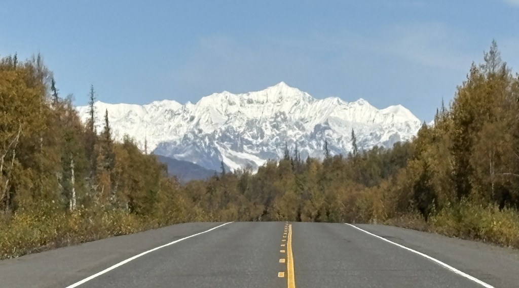 As I drove north, when I got close to the town of Talkeetna I could see Mt. Denali ahead of me.