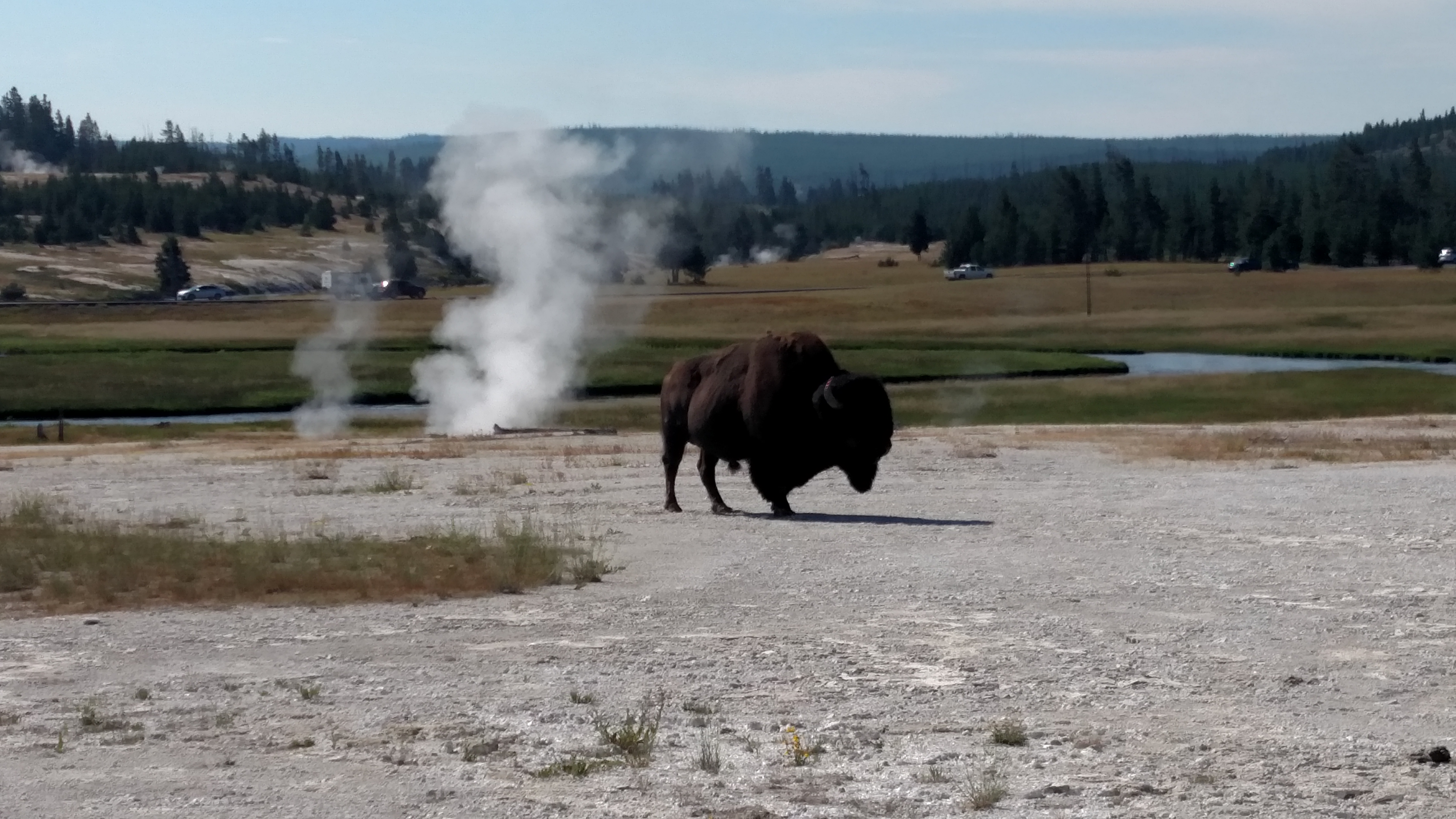 I also saw two brown bears today (most likely grizzly’s in these parts). They were both outside the park (I had to drive about 90 miles down from Bozeman to get to the closest entrance). I saw one this the morning on the way down and one in the evening on the way home. Both times they were pretty far off the road but you could tell they were VERY big.