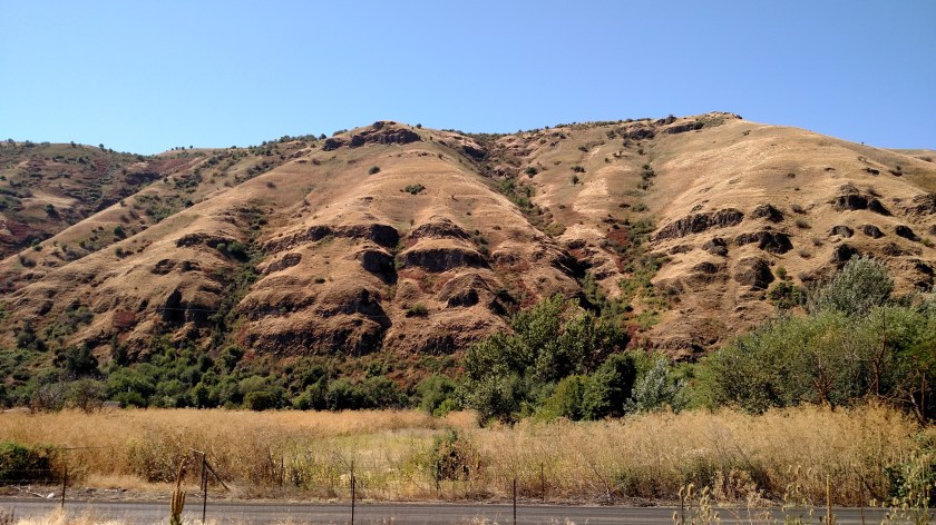 These aren’t big mountains, as I have been seeing so far this trip. These are probably only a few hundred feet in height. What struck me about these was that they were covered with dry, brown grasses which from a distance looked like cloth or felt. I’ve never seen a hillside that looked quite like it.