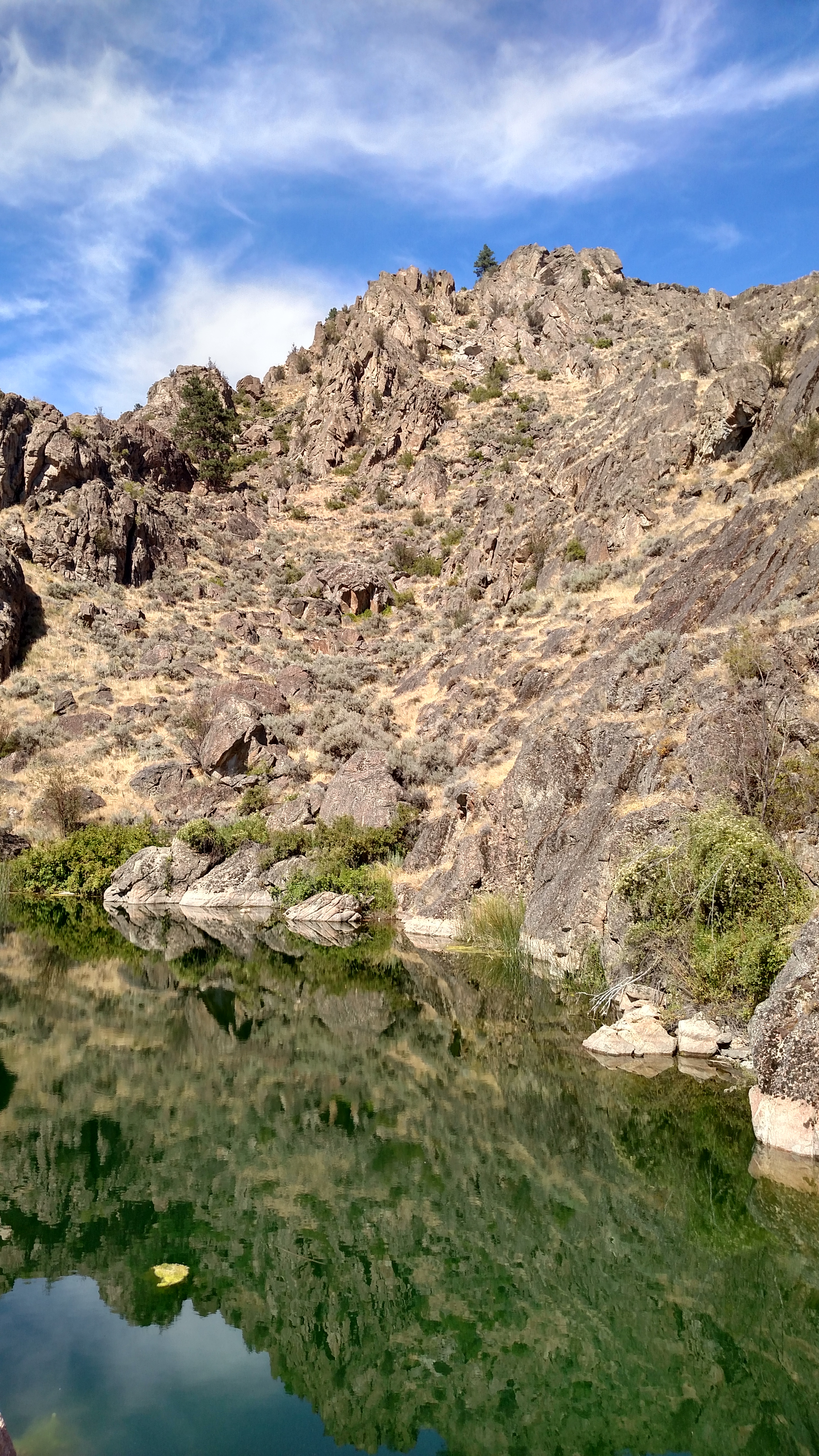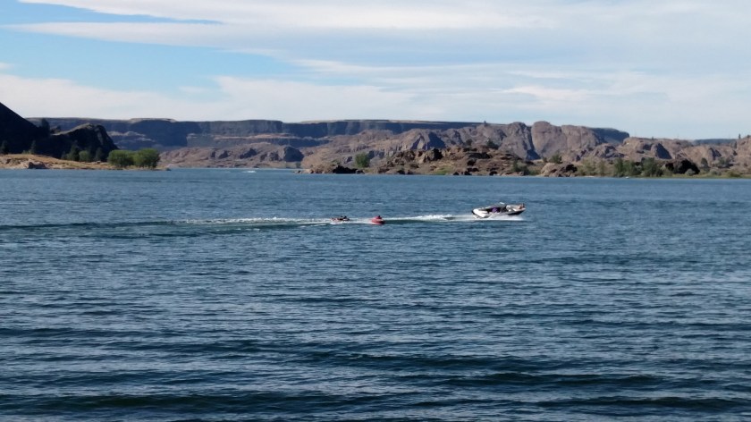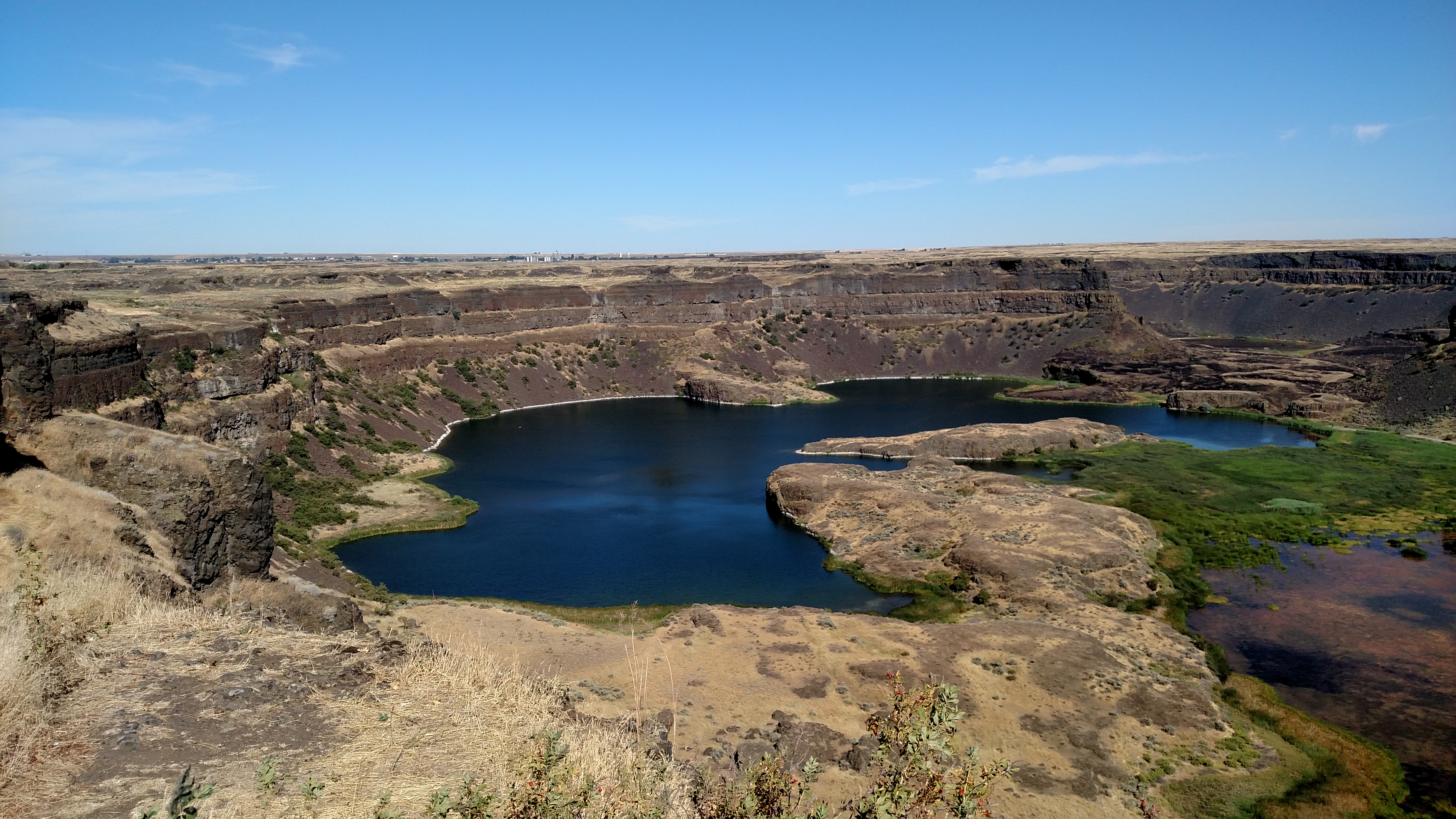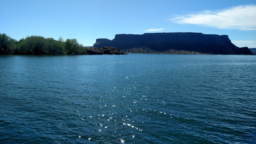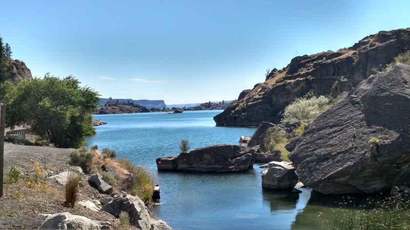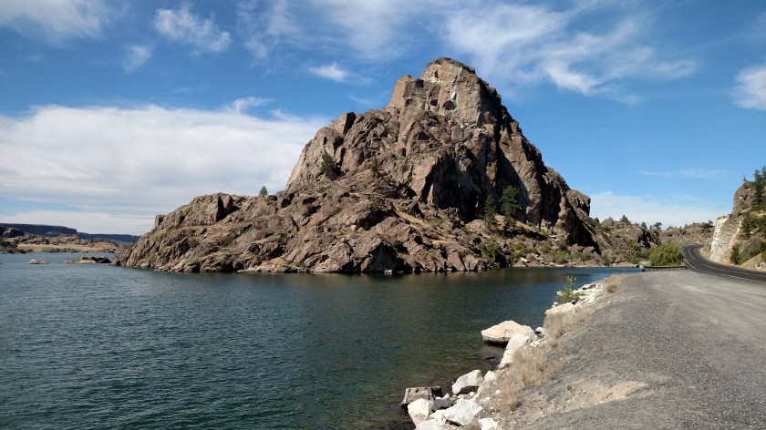 This is one of the advantages of driving on scenic roads. After spending several days on prairie land and in mountains, this was the opening act of what turned out to be more than an hour driving adjacent to Banks Lake, which is home to Steamboat Rock State Park in Washington State.