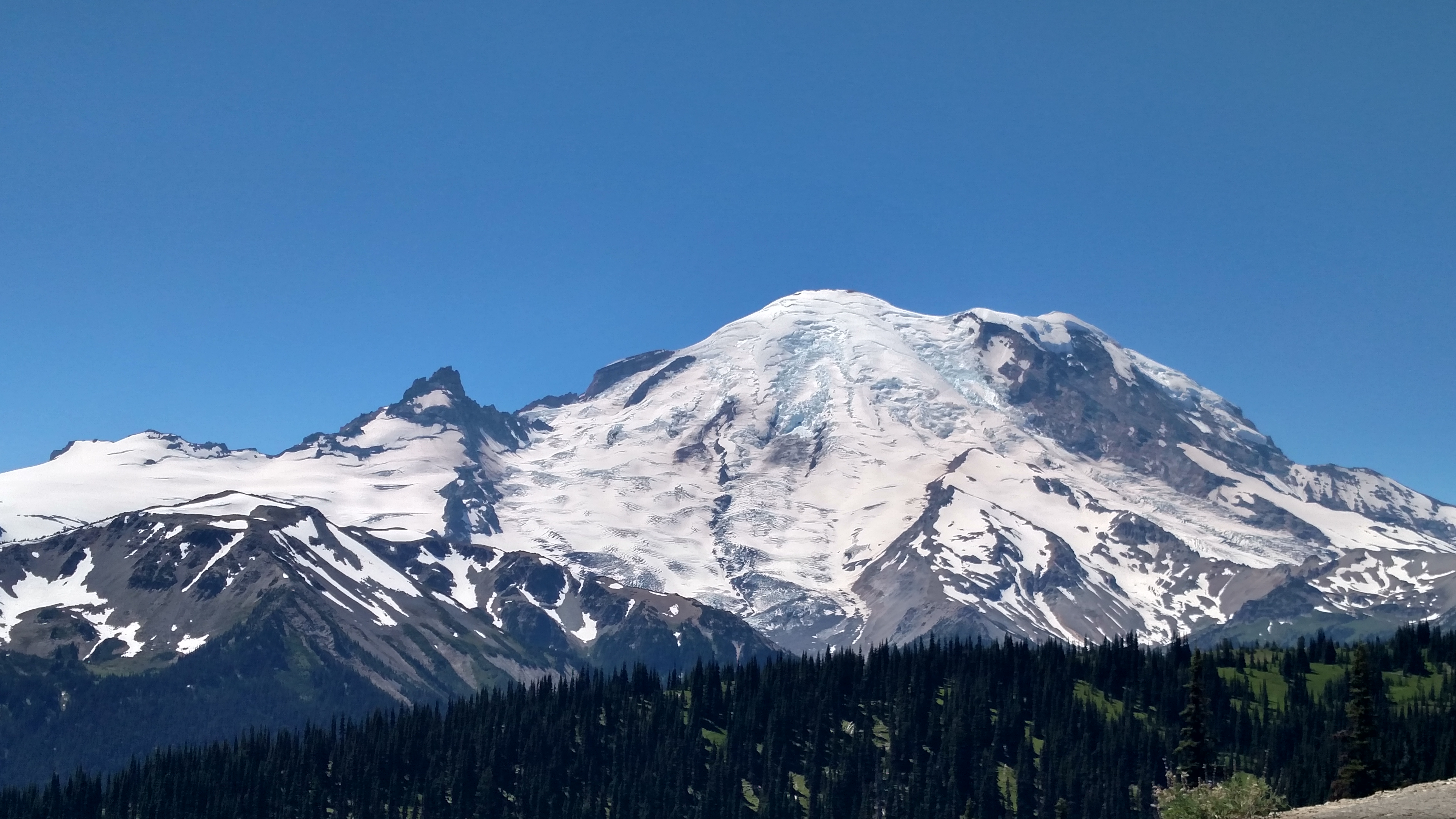 The main Visitor Center for Rainier is located up at 6,400 feet (the highest they let you drive) in an area called Sunrise, which is where I took the bottom photo. There is also a parking area called Paradise, which has an elevation of 5,400 feet, and is where I took the photo in the post below.