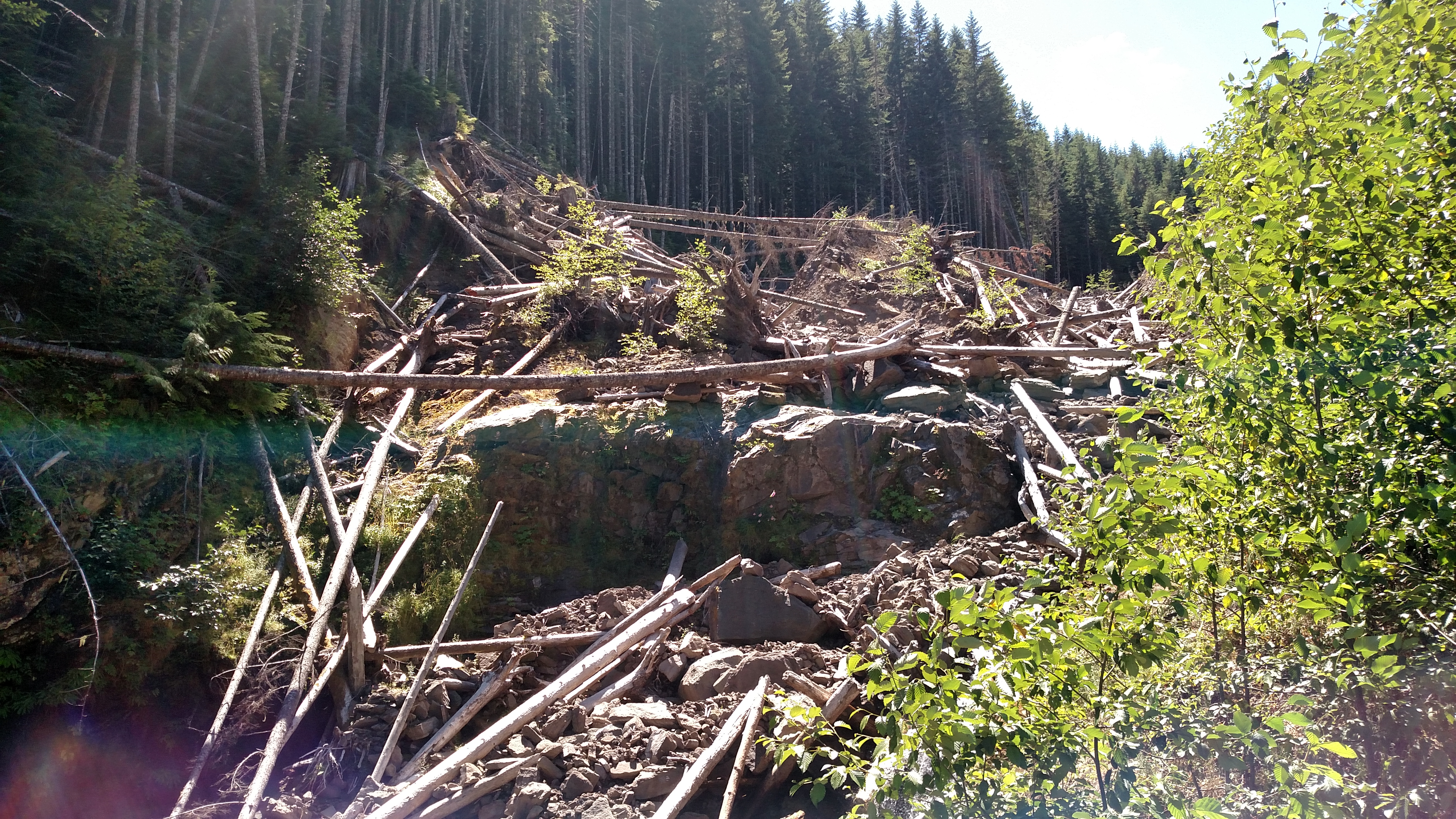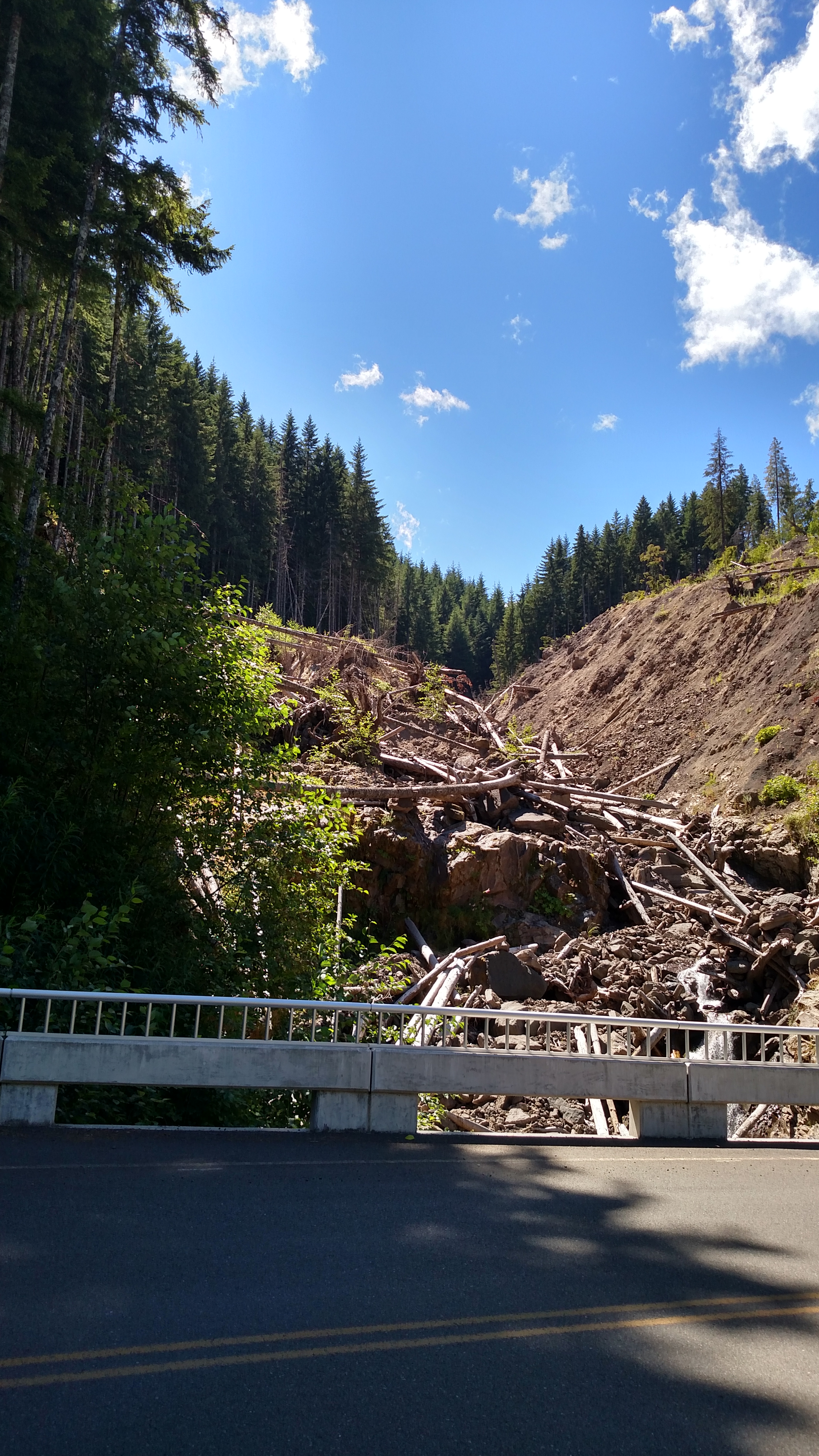 Gives new meaning to “water slide” I came across this on my way up to Mount Saint Helen’s. There is a stream under all those logs which apparently eroded the bank. Trees fall down go boom. I wonder if there was anyone here to hear it? Otherwise it made no noise! Share this: Click to share on X (Opens in new window) X Click to share on Facebook (Opens in new window) Facebook Like Loading... Related