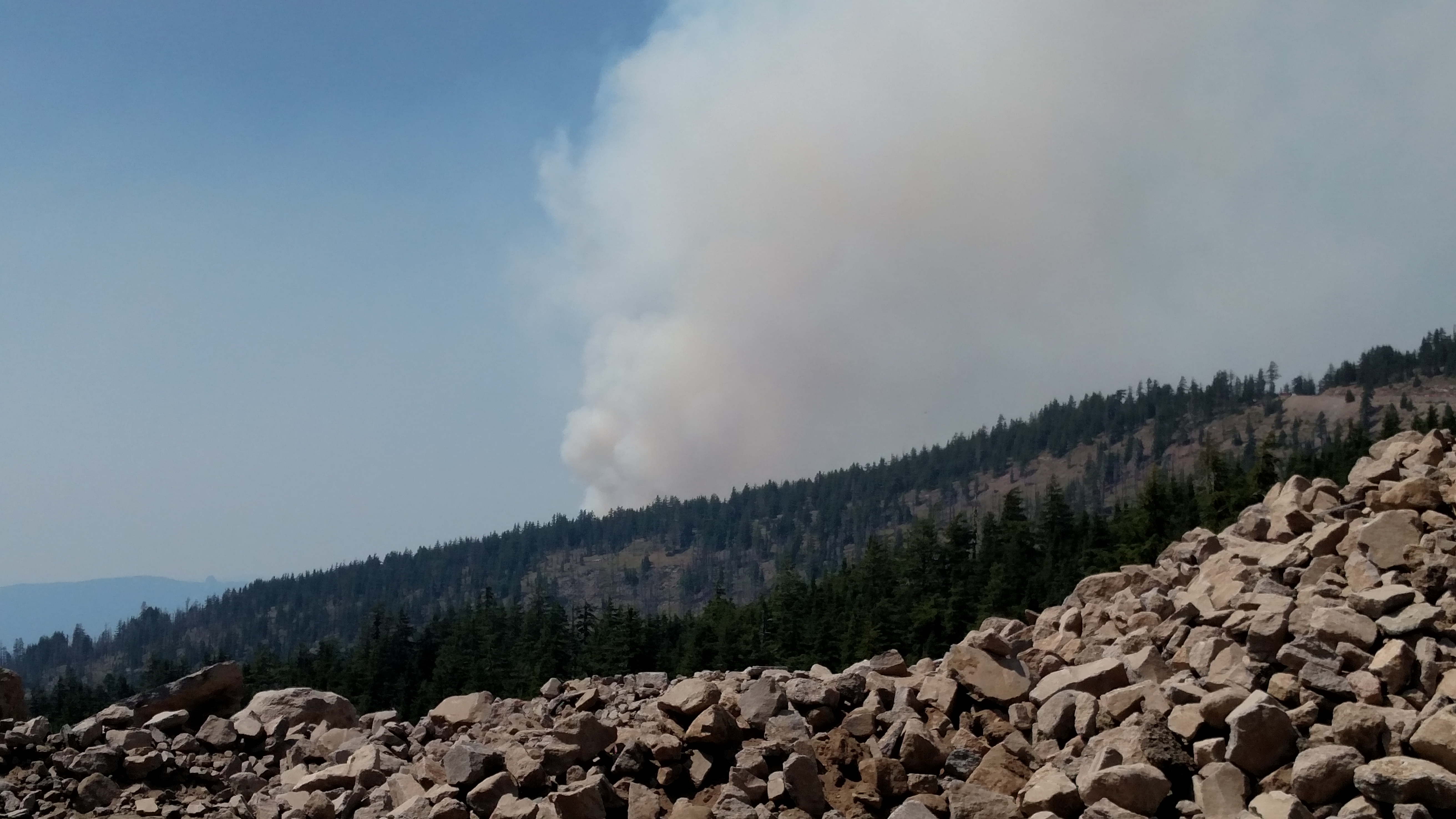 Shortly after entering the Park at the south entrance and beginning my clockwise drive around West and East Rim Drive I noticed the smoke from this wildfire off to the west. It is located outside the Park itself but within Klamath County. It just started 5 days ago, currently involves 130 acres and is only 5 percent contained.