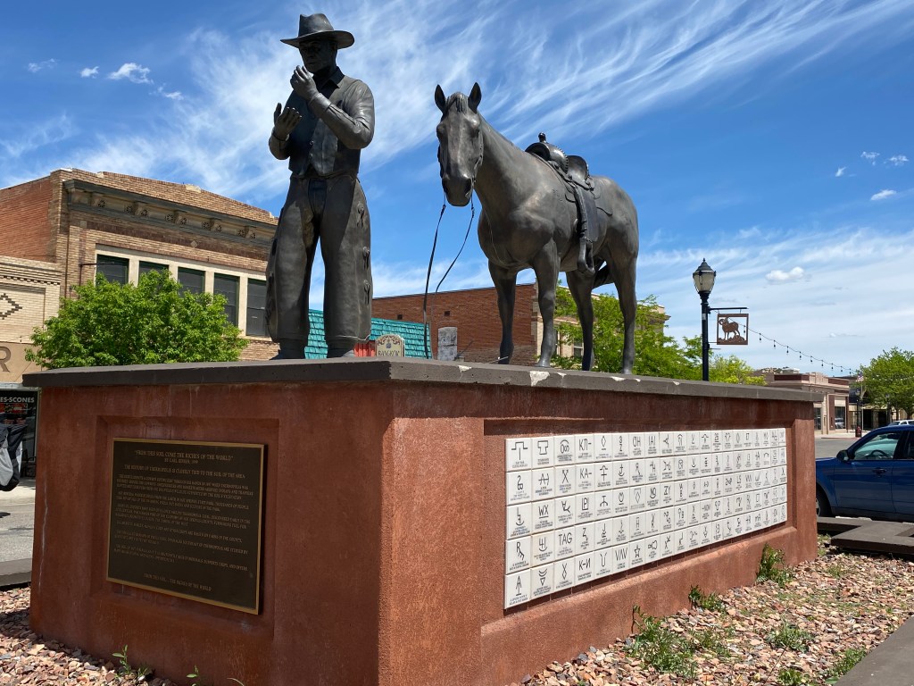 On both sides of the statue were the “brands” of various Wyoming ranches. These represent the names of the ranches and are burned into the sides of their cattle. There were roughly 200 on each side and I won’t show them all but here is a sampling: