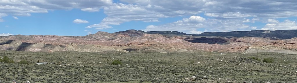 As I traveled to Thermopolis on Tuesday I drifted on and off of Wind River Indian Reservation land. I also stopped, for the second time, at their Wind River casino which is 2 miles south of Riverton and a little more than 20 miles from Lander. Wednesday I drove northwest from Lander, to the little town of Dubois, which I will be making a separate post about. Thermopolis and Dubois are both about 85 miles from the house in Lander and while I drifted on and off of Indian land on Tuesday I was on it almost all day on Wednesday, except for the towns at each end. Turns out the Wind River Reservation is ENORMOUS – over 3,500 square miles – almost three times the size of Rhode Island!