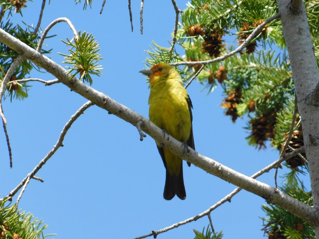 My sister-in-law heard this bird chirping high up in a tree above us: