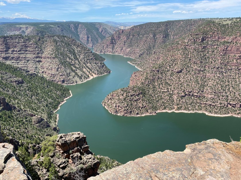 A volunteer working for the Forest Service at the Flaming Gorge National Recreation Area Visitor Center suggested that we stop at a small overlook not far up the road from where we were as a small platform had been constructed out overlooking the reservoir making it easy to get some great photos. This shows the view from a slightly different angle.