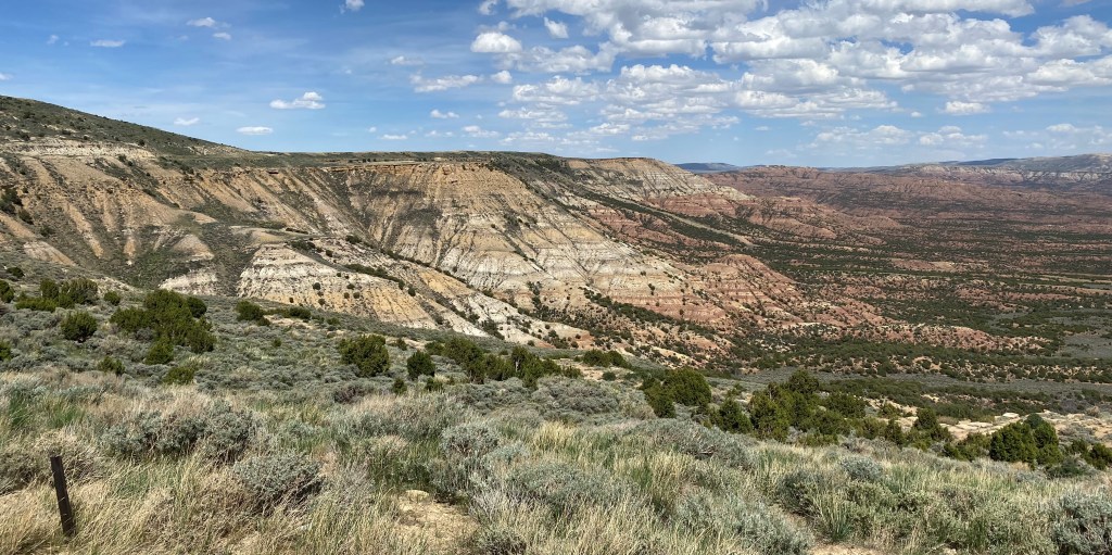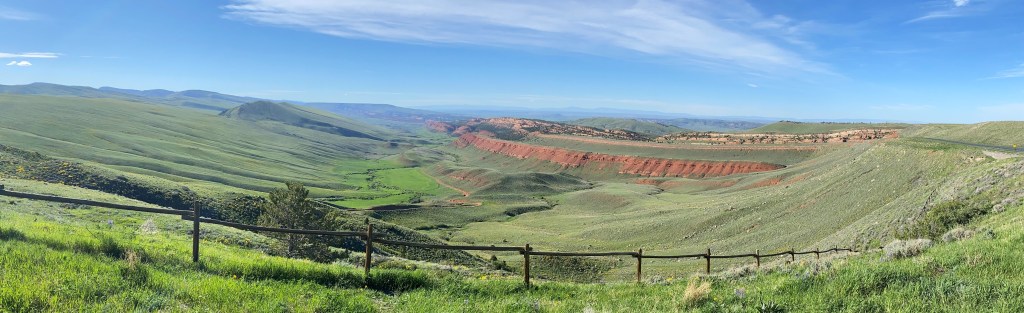 Heading home to Lander we stopped for another photo of Red Canyon, just south of Lander, as the afternoon sun was hitting it just right to highlight the “wall”. I learned after reading some travel literature that this land is now owned by The Nature Conservancy and is a working cattle ranch. It is also on a huge migration path for elk and other animals so sightings at certain times of the year are numerous.