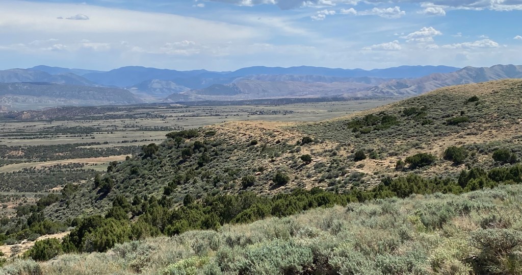 The photo below is looking northwest, further into Utah, at the snow-covered Wasatch Mountain range: