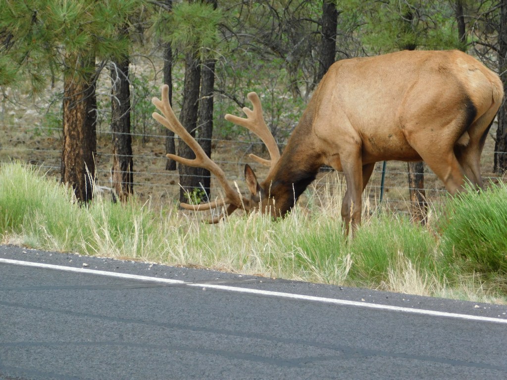 As I was leaving the South Rim of the Grand Canyon one day last week there were four bull elk blissfully grazing on both sides of the highway. This was out on the main highway, not far from the south entrance.