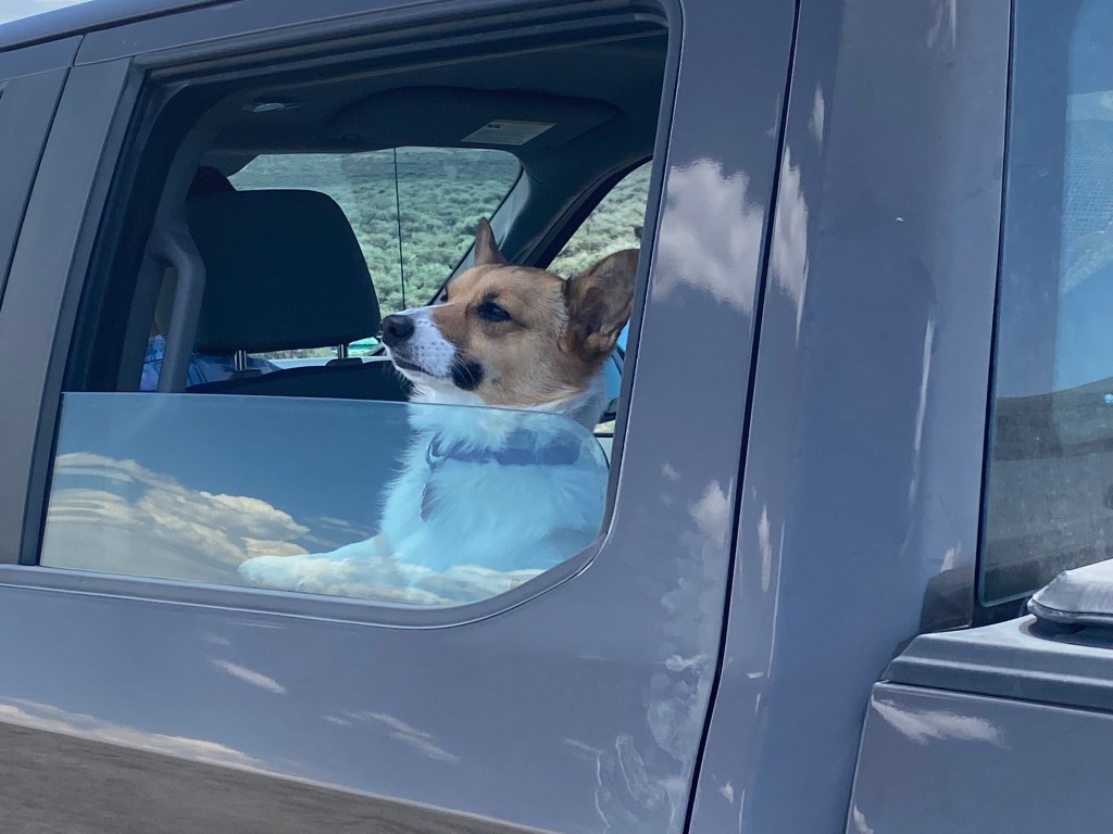 Saturday, June 19 was my birthday! My brother and sister-in-law asked me if I wanted to do anything special and I said “yes, I would like to go to the Red Desert”. They had given me a map of it and, while desolate, it sounded like an interesting place. Jen had to go out of town that afternoon for an overnight family function down in Colorado but she, Ellie (their corgi) and I went downtown Saturday morning to the Farmer’s Market, to see part of the “art walk” along the river and to get brunch from the Lander Bake Shop (a yummy quiche and an apple cake I think she called “Gerty Bread”).