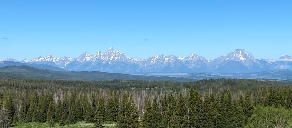 I finally reached an overlook where I could see the Grand Tetons in the distance: