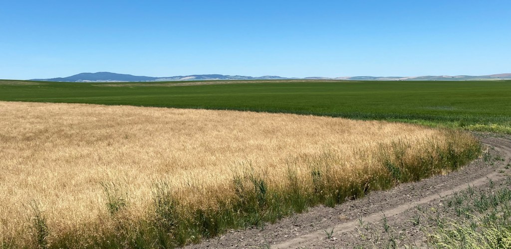 Much of the farmland in Idaho is for growing potatoes (this IS Idaho after all…). I believe the green field in the photo below is potatoes.