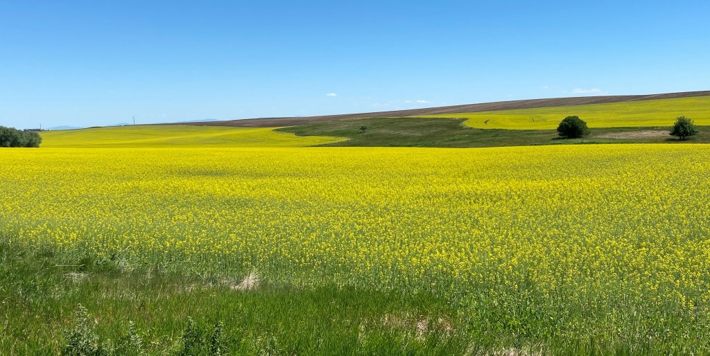 That I expected, but I was surprised at the number of fields in this region where canola is grown. As you will see, canola fields are a very impressive yellow in color.