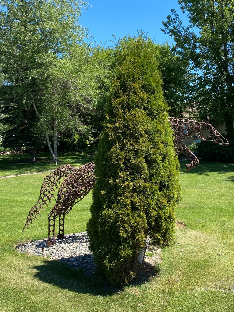 I drove through town (it didn’t take long!) and when I turned around to head back out the way I came in I noticed this piece of artwork in someone’s front yard: