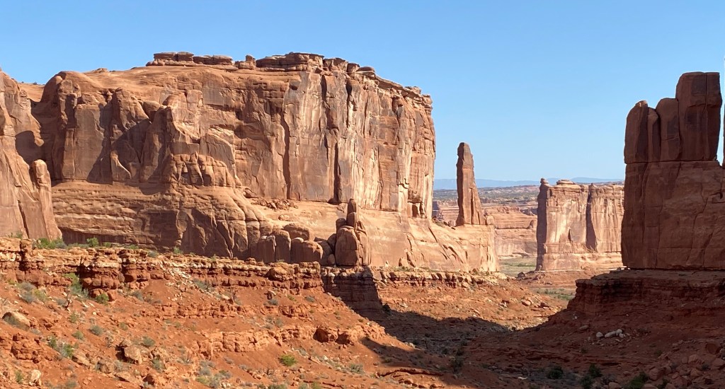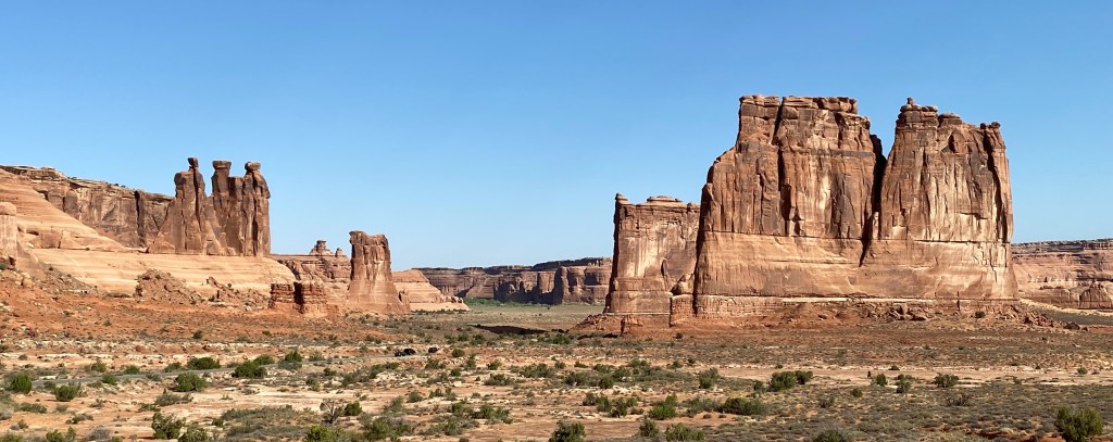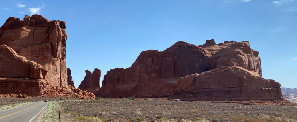 And this next photo includes Utah’s version of “Balanced Rock”. It is the one on the right and is bigger than it looks. From this angle it is off in the distance.