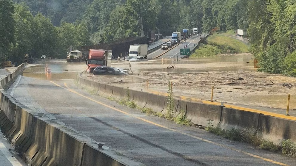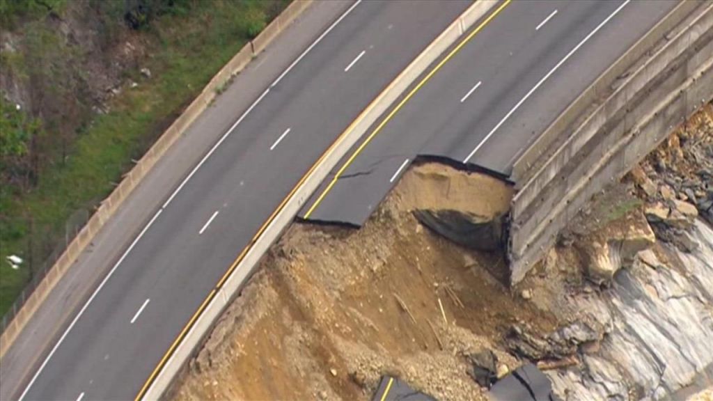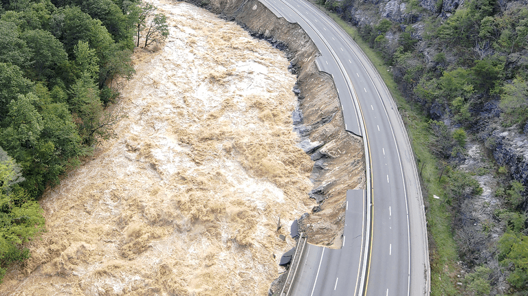 This existing problem was compounded exponentially on September 27, 2024 when excessive rains from Hurricane Helene (on ground already saturated by rains from back-to-back “normal” storms the week before which, because of the mountains, often result in nature squeezing even MORE moisture than normal out of the air) caused exceptionally high water levels in the Pigeon River, which runs adjacent to the westbound lanes of I-40, causing them to collapse, literally, into the river.