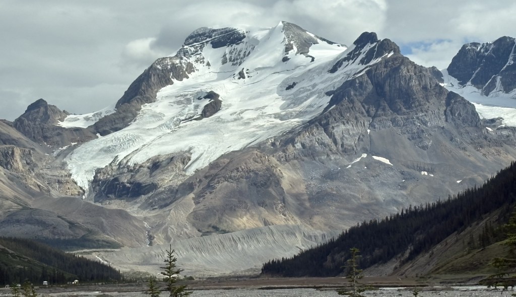 The two photos above are of the Athabasca Glacier, the largest one in a group of five which comprise the Columbia Icefield. I actually took those photos on my way south back towards Golden after having been to the town on Jasper.