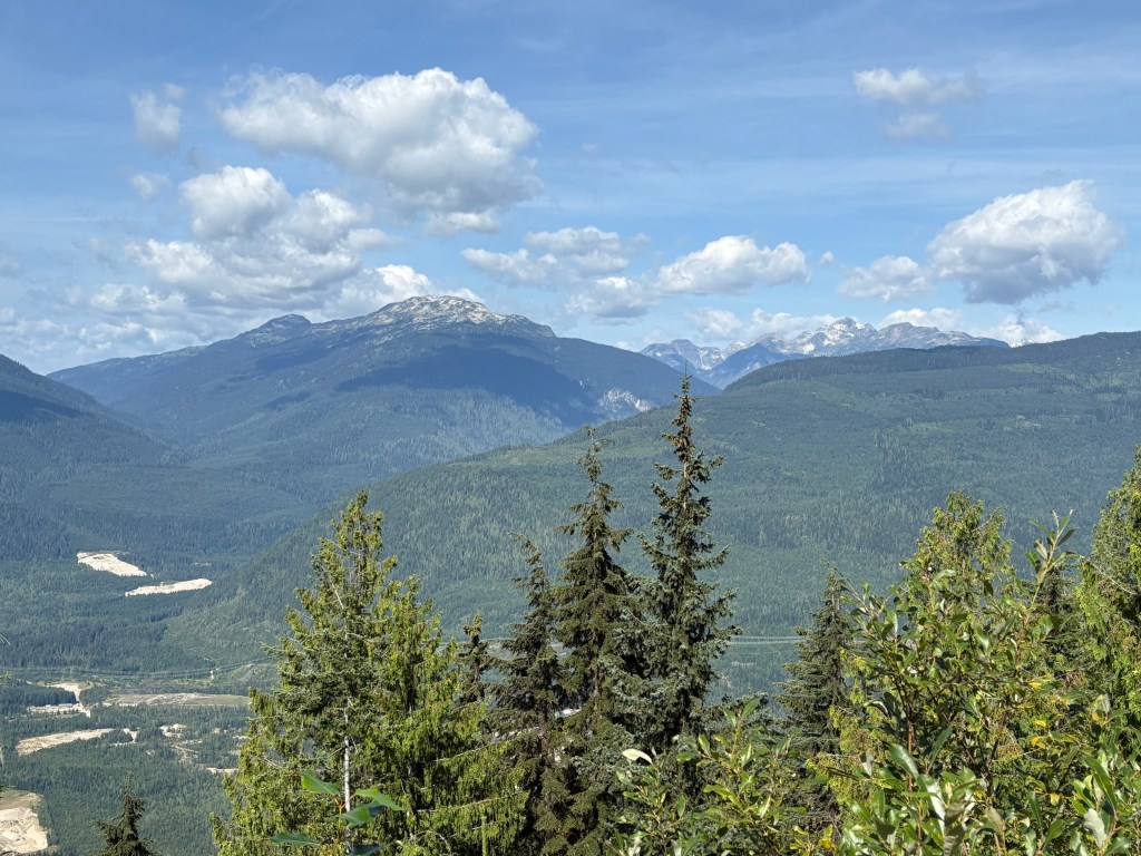 This one looks down at the town of Revelstoke. Beyond it is the Columbia River, and the mountain in the distance is Mt. Begbie, which is almost 8,000 feet tall. I proceeded all the way up to the small parking area at the top (which I had to walk to as vehicles were lining up along the access road). There was a small cabin with rangers to answer questions.