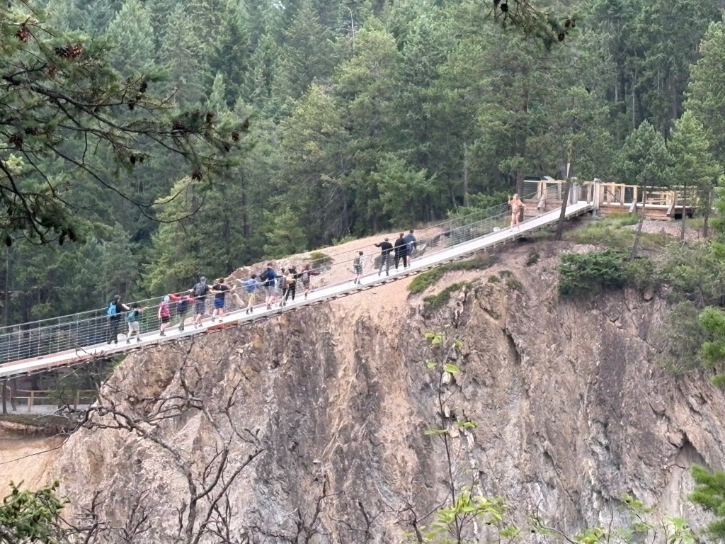It’s main attraction would be the two suspension bridges, one 492 feet long and 426 feet above Hospital Creek (that alone would probably prevent me from walking out on it, never mind my fear of heights). The smaller one is 459 feet across but “only” 262 feet high. They are the highest suspension bridges in Canada.