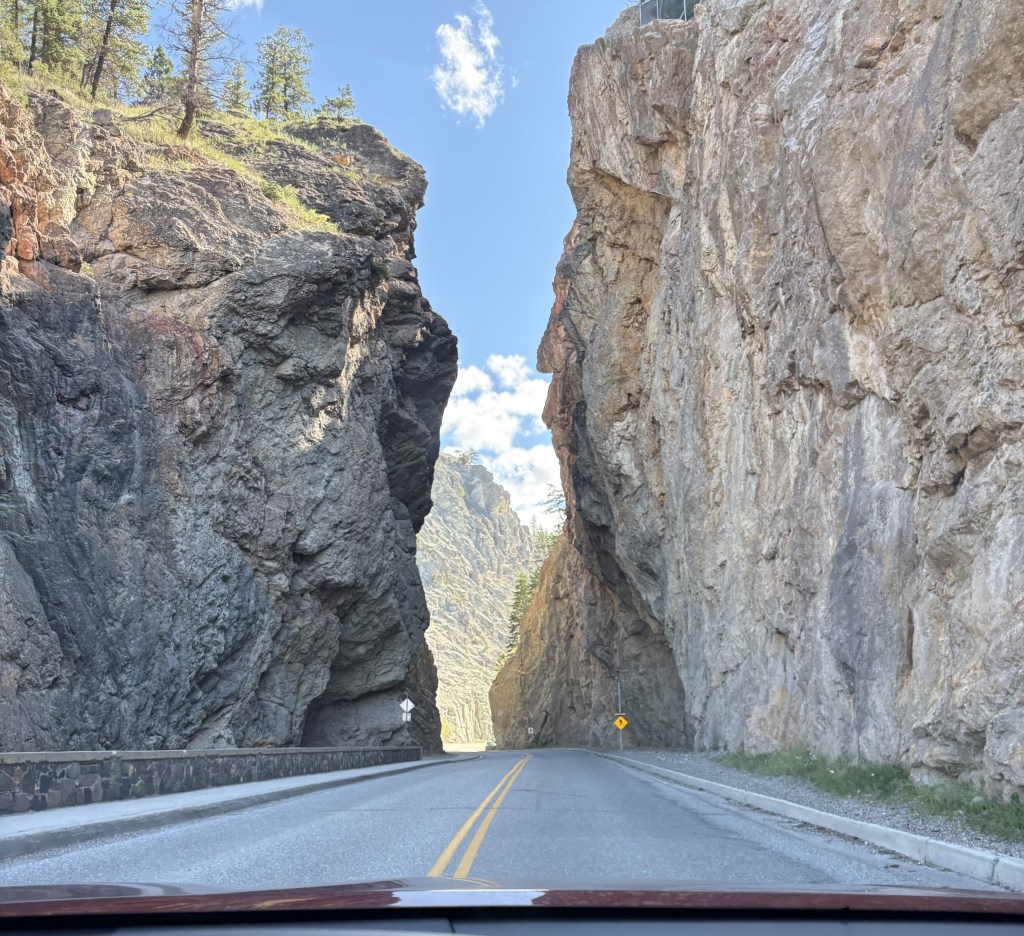 The next thing I saw was also something I didn’t photograph the first time through the Park. A large red rock wall on the left side Highway 93S. This time I pulled off into the area where the entrance gate for the Park is and walked back to take a photo of the wall. I have not seen anything like it so far in Canada and suddenly I felt like I was in southern Utah!