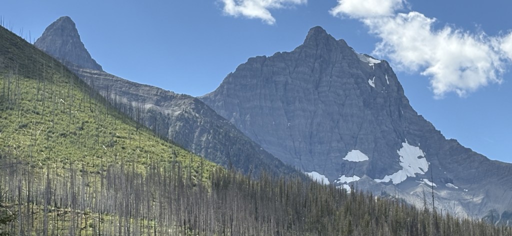 The mountain above is one of the ones I CAN identify. It is Stanley Peak, 10,351 feet tall, which is home to the Stanley Glacier: