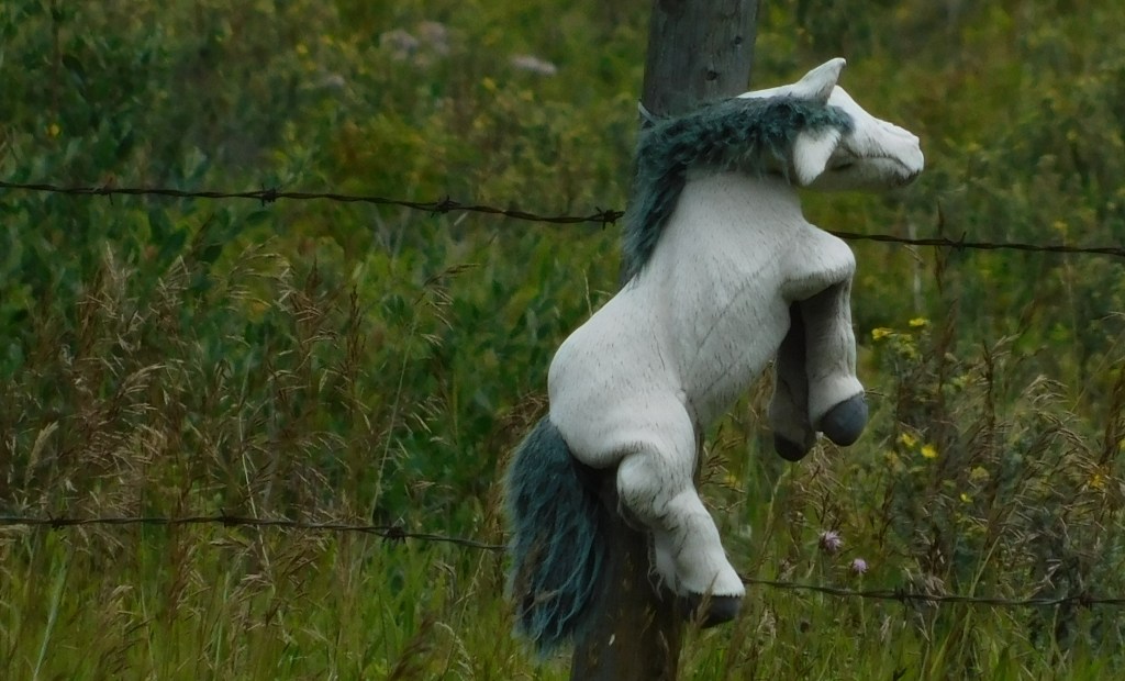 These were taken at the point where I decided to start back. It was near a small town which I can’t even find on the map. There were lots of stuffed animals, painted white or faded by the sun, attached to the fenceposts near the road.