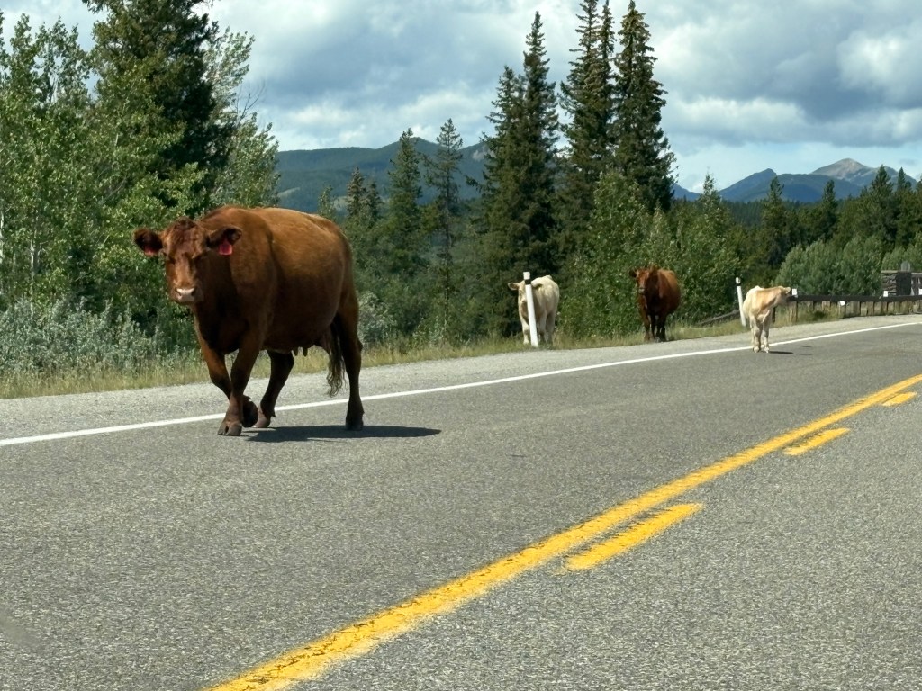I’ve been telling people who ask about how many and what types of animals I have seen during my trip that I have undoubtedly seen more cows in the road (not only here but elsewhere) than anything else. Eagles and moose are probably next, and after that the numbers are very small.
