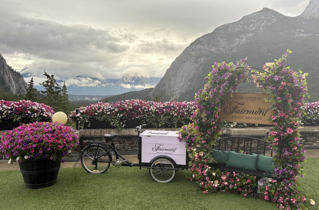 I went back to my car and drove to the Fairmont Banff Springs hotel. I had to park on the street behind the hotel and managed to find a way up a set of stairs on the side of it. I couldn’t get a good shot of the hotel itself as I was too close to it, and I would have needed a key card to open any of the entrance doors.