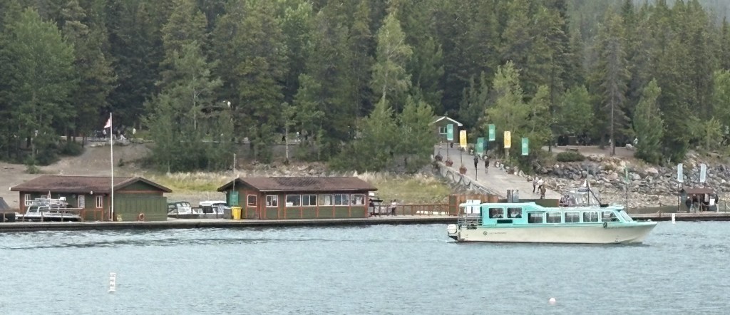 At the far left end was a long dock and several boats which take people out onto the lake.