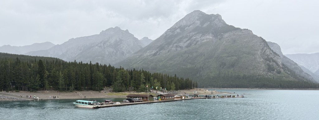 It was still raining and more tour buses and RV’s were starting to arrive in town so I thought I would try my luck across the Trans Canada Highway and up over a mountain to visit Lake Minnewanka.