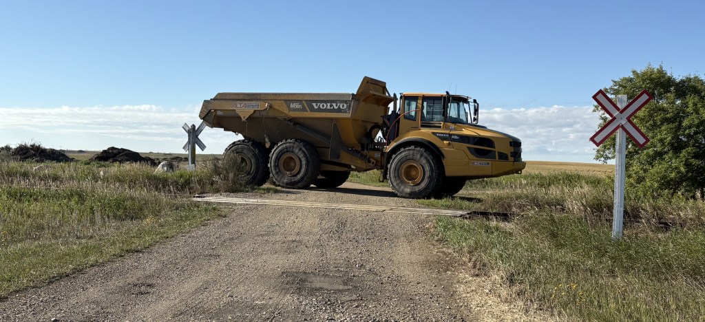 When driving through farmland like this it is not uncommon to find these in small towns which are located along railroad tracks: