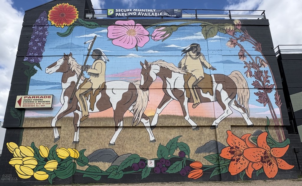 There were two huge murals right next to each other as I crossed a bridge into the downtown area.