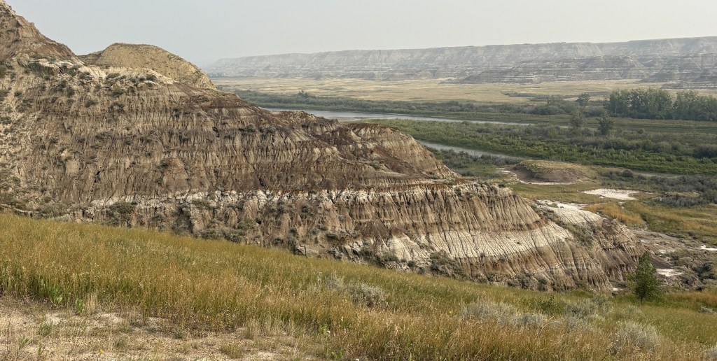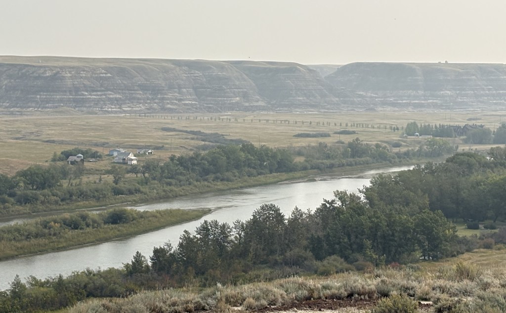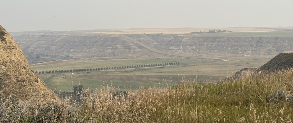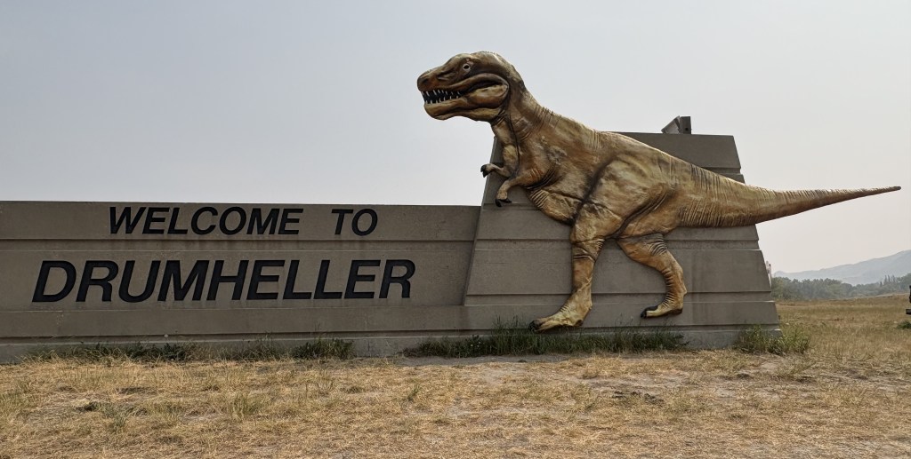 I went out to get something to eat and returned to my Airbnb. By the next day the air quality in Red Deer had changed to unhealthy, and my throat was a little sore from having been outside the day before, so I just stayed put for the day. The next morning I evaluated my options online and decided it should be ok to go back south and east towards the town of Drumheller.
