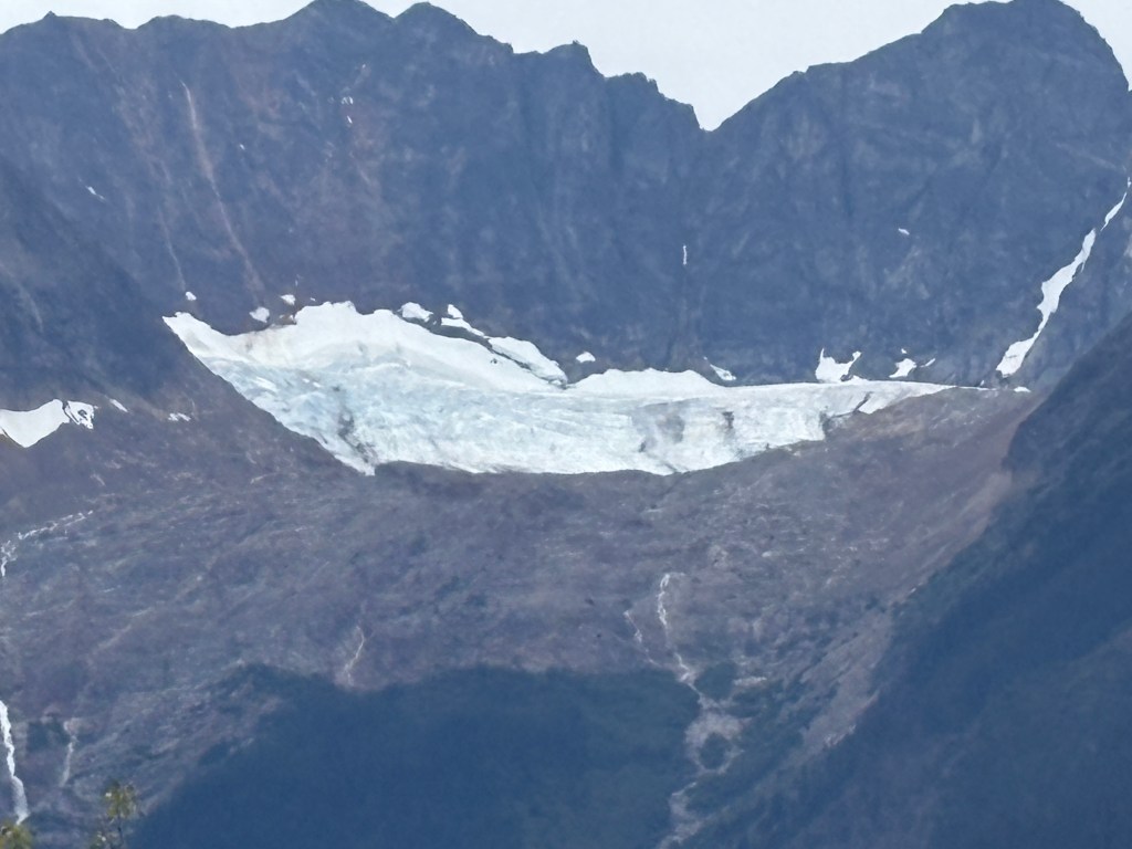And the mountain on the far right is home to the Hudson Bay glacier: