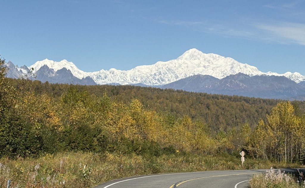 As I drove north, when I got close to the town of Talkeetna I could see Mt. Denali ahead of me.