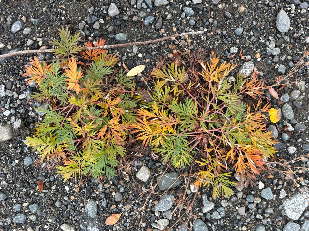 As I was walking back to my car I noticed this plant down by my feet. It might help explain the multi-colored shrubs I have been seeing.