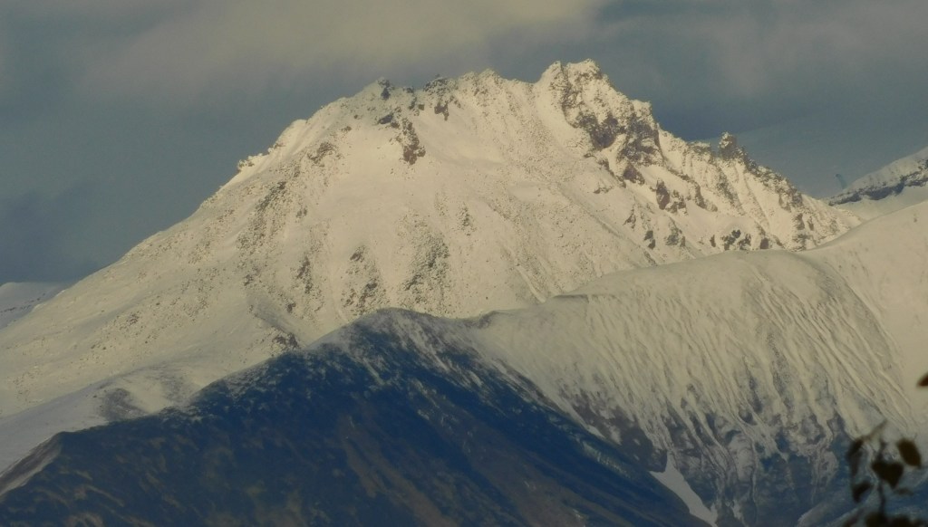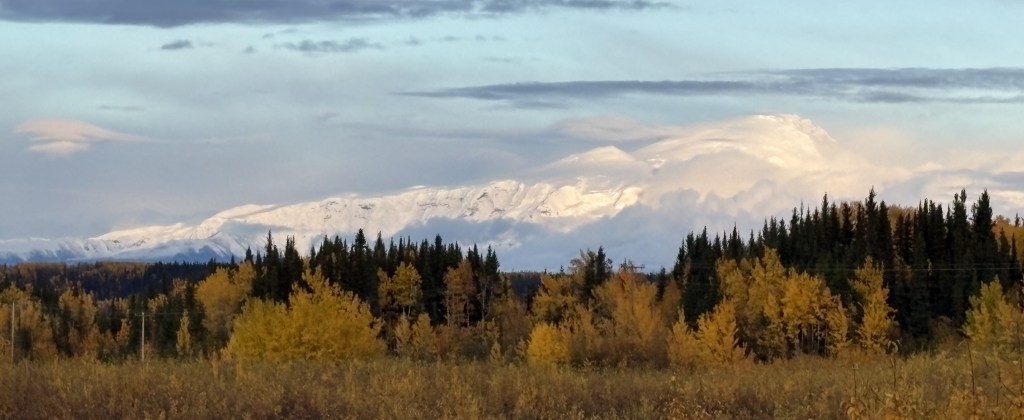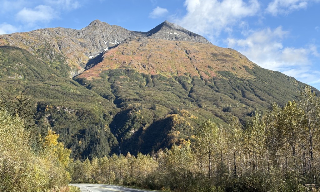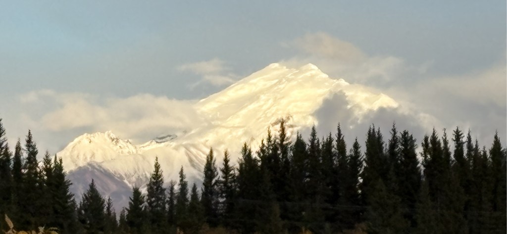 I didn’t see the other mountain until I had turned east on Hwy 1 at Gakona Junction, just a short distance from my Airbnb. There was a pullout area where I had stopped two or three times on various passes through the area and today was the first time I saw this big, white mountain to the southeast. It is Mount Sanford and is 16,237 feet tall, but is further away so it doesn’t look quite that big.