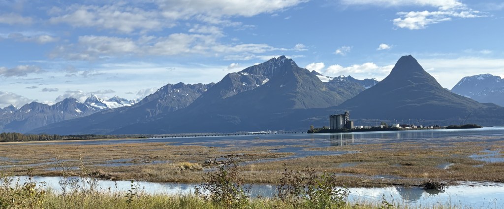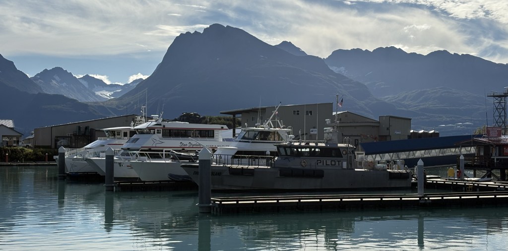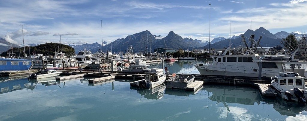 I ate lunch at a restaurant just across the street from the harbor. I told myself that I would enjoy fresh Alaskan seafood every time I was in a coastal city. Valdez isn’t out on the Gulf of Alaska but is tucked away in the Valdez Arm of Prince William Sound. That’s close enough for me. I had fresh broiled halibut and it was delicious.