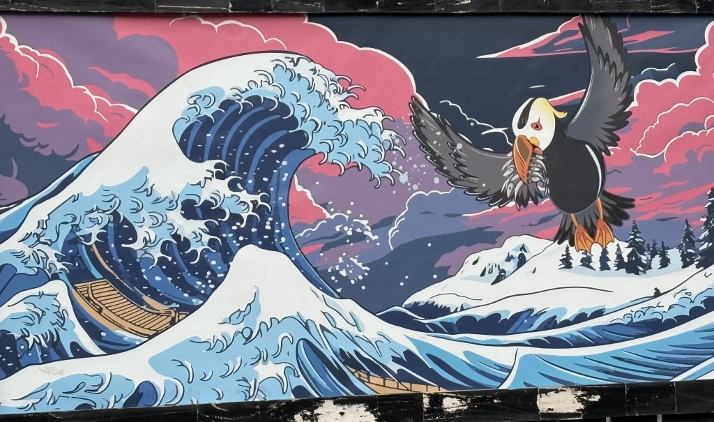 Here is a small mural on a cannibis dispensary called the Tufted Puffin: