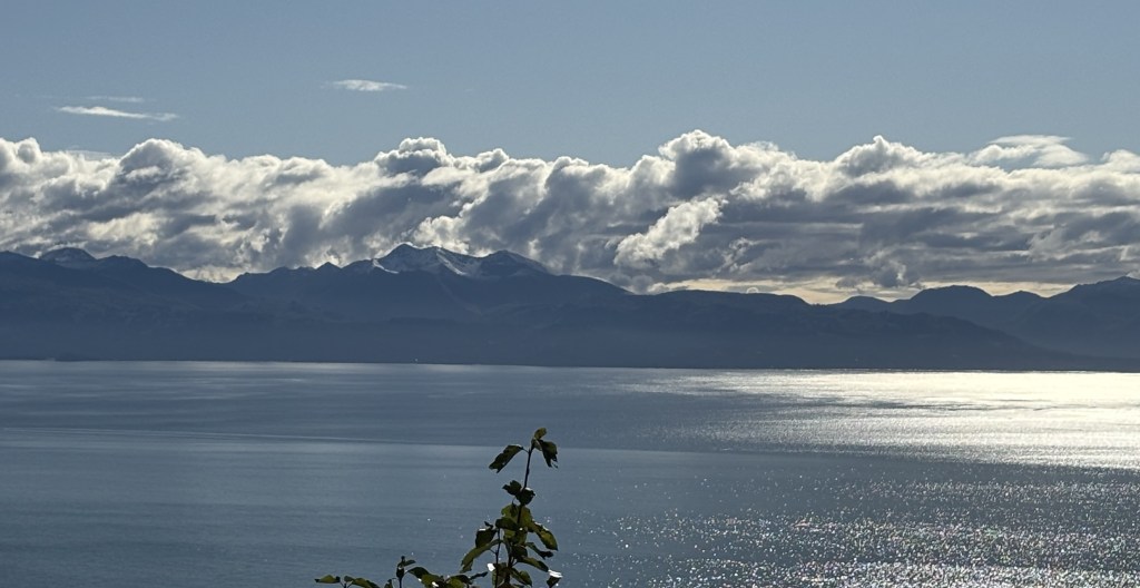 Those are one (or two) of the glaciers on the far mountains. There will be more photos of them in future posts.