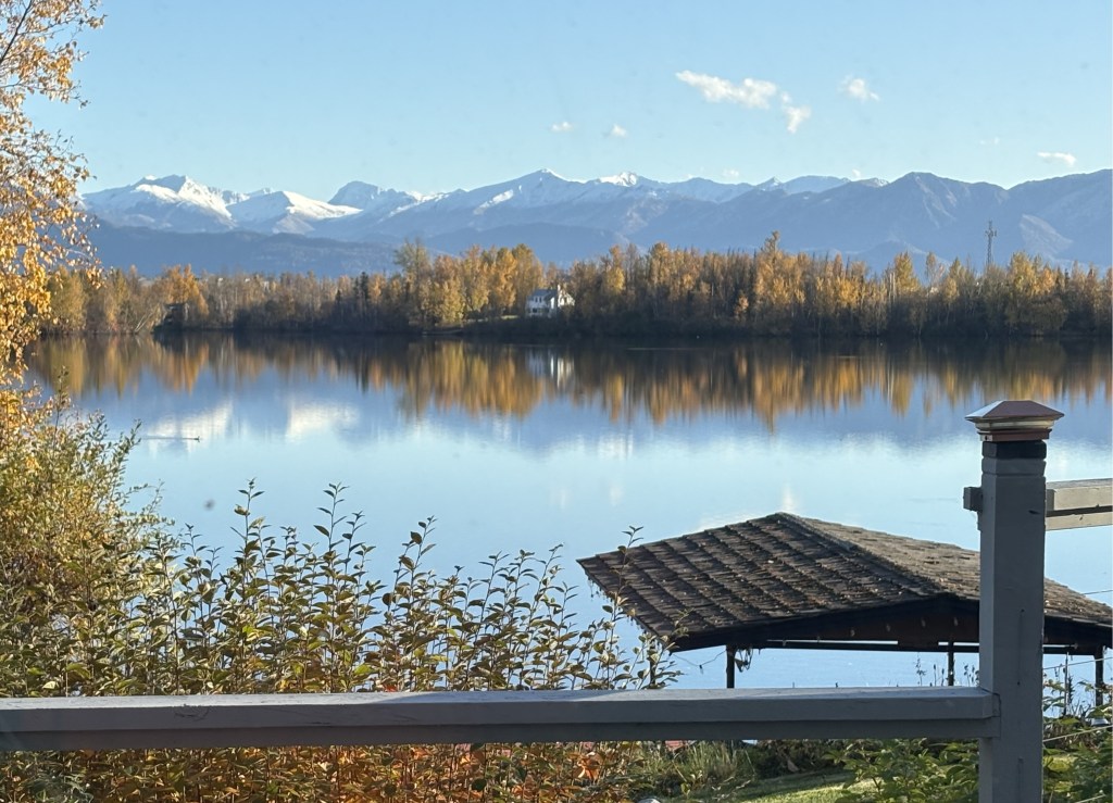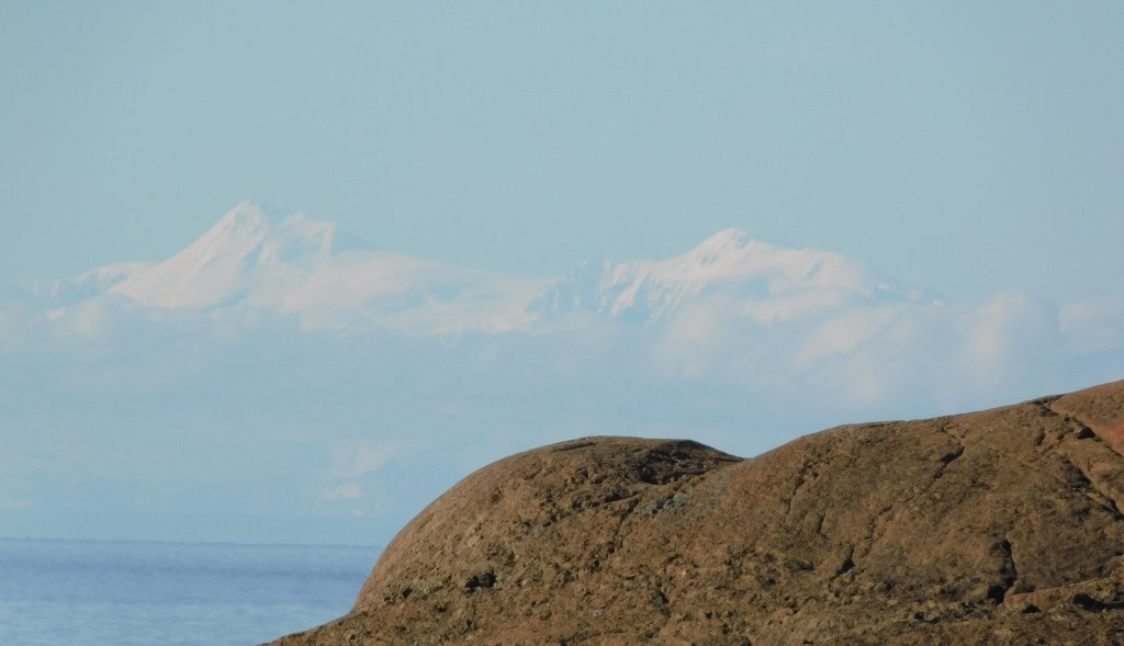 And from down near her dock, here are two photos looking at some other snow topped mountains in the distance.