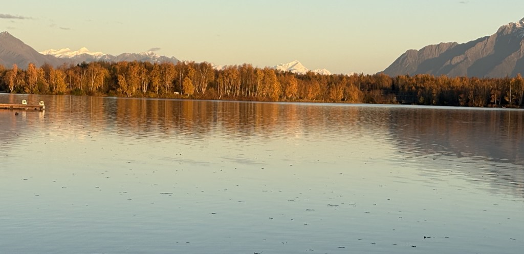 I checked in at my Airbnb, which was a short ways off the highway, overlooking a lake. This was the view from her back porch.
