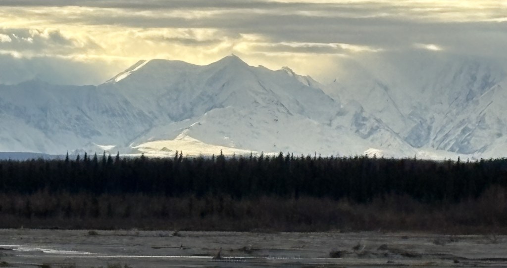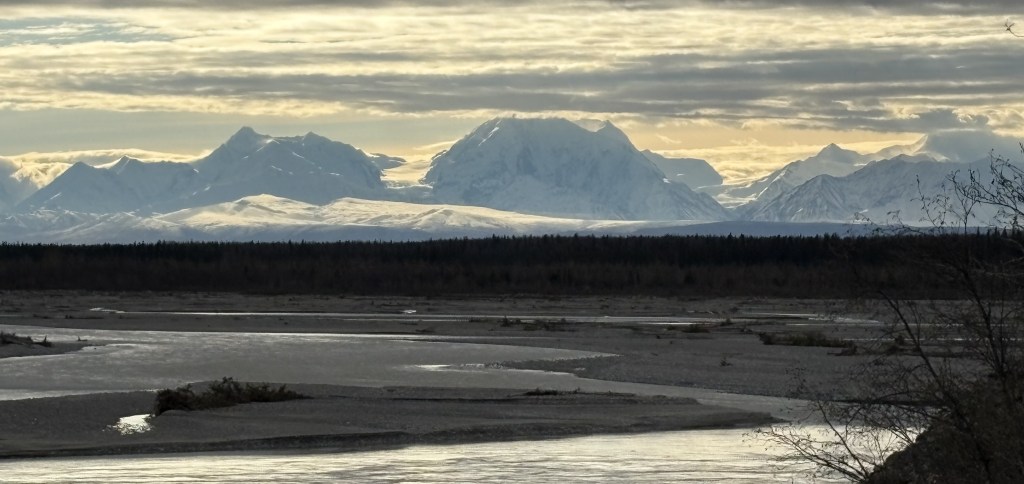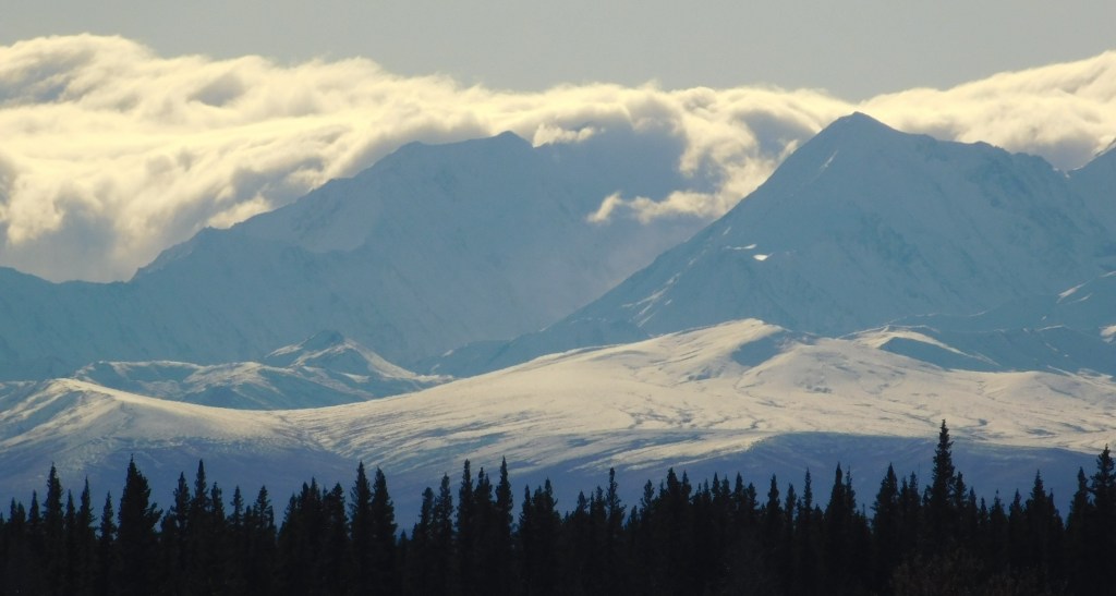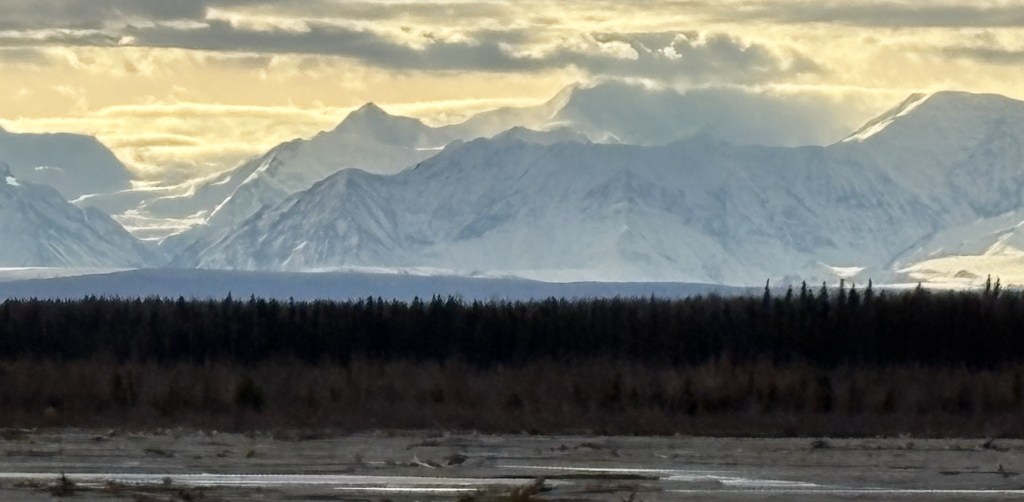 I am going to break up my trip to Tok into two parts – getting from Fairbanks to Delta Junction (which I have done before) and getting from there to Tok (which will cover new turf). I took lots of photos of several mountain ranges and will post them in a somewhat different manner.